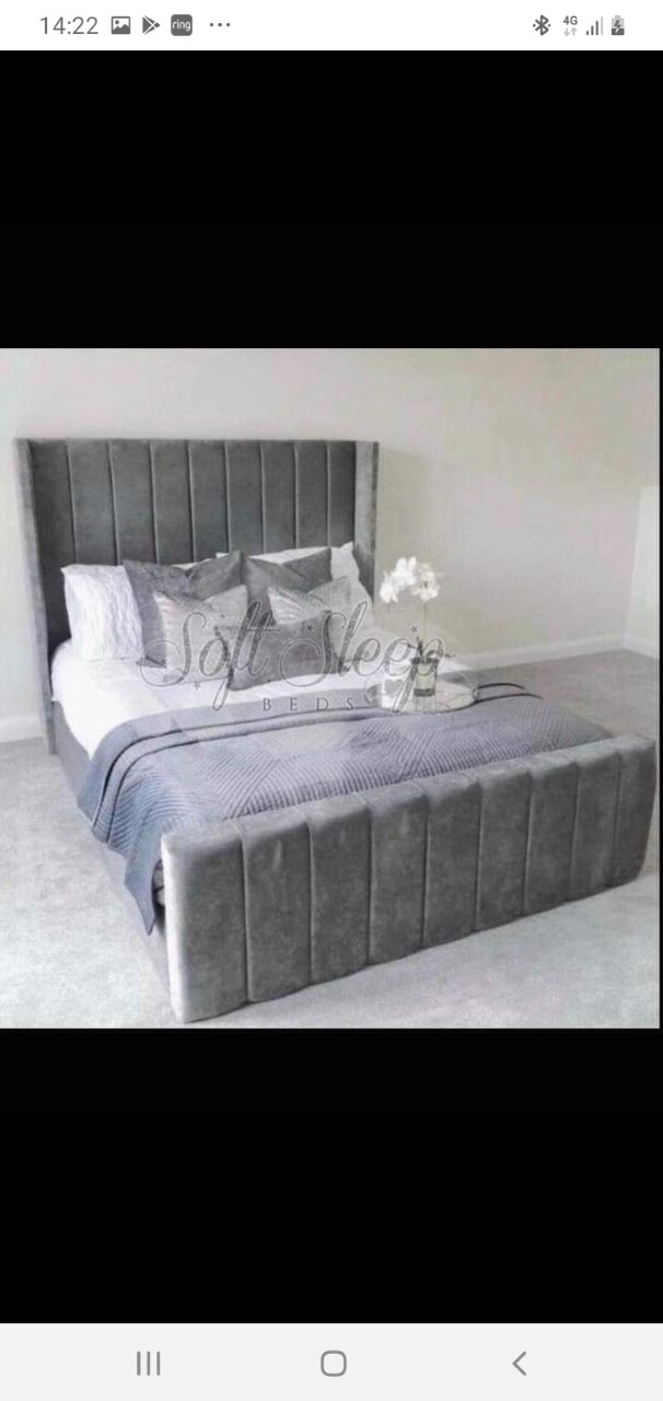 4.6 Winged bedframe in a range of colours and options with 1 inch thick slats . Can be supplied as an ottoman or standard bedframe.