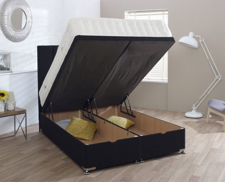 5ft ottoman base with solid wood base and sides available in 100 colours and has 4 gas lift bars for ease of operation.