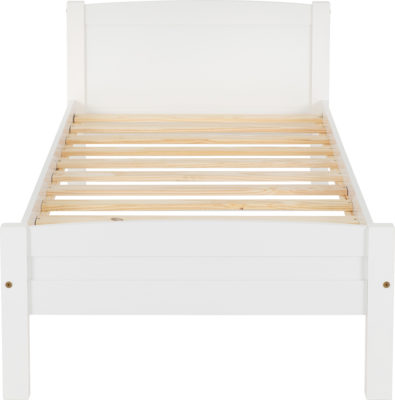 Ambur 3ft white painted bedframe with wooden slats, self assembly.mattress extra.975 x 1985 x 720