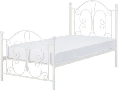 Annabel 3ft metal bedframe finished in white, sprung slatted base.mattress extra, self assembly. 970 x 2000 x 1180
