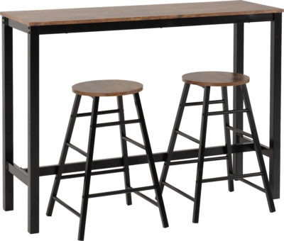 Athens breakfast bar in acacia effect and black with 2 lovely bar stools. 120cm x 40cm