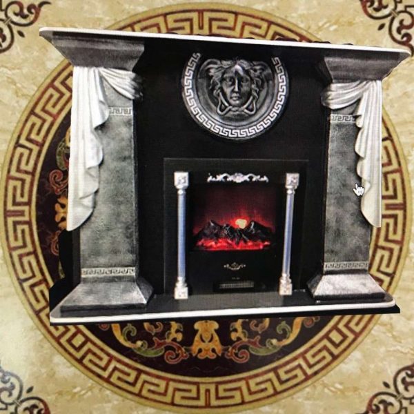Black and silver fireplace shown with black and silver remote control fire. Size 145cm x 50cm with a height of 105cm