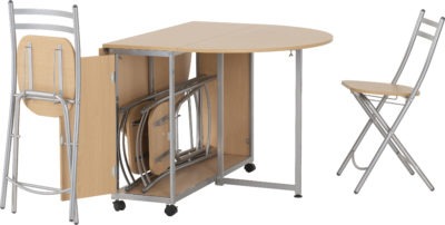 butterfly dining set with 4 chairs which can be put under table when not in use . Closed size 40cm x 100cm with a height of 74cm.