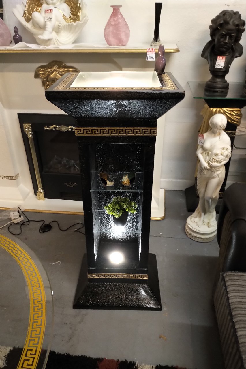 Cd tower in black and gold with greek key and lights. 100cm tall