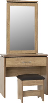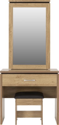 Charles 1 drw dressing table set with mirror,dressing table and stool in oak effect veneer with walnut trim
