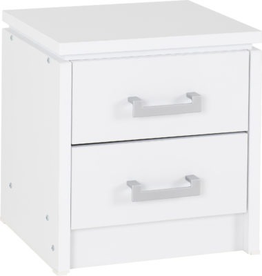 Charles 2 drw bedside chest in white with metal runners, self assembly. 440 x 400 x 480