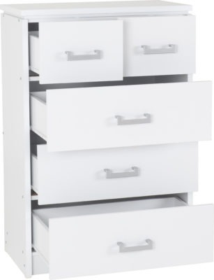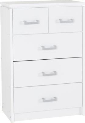 Charles 3 +2 drawer chest in white with metal runners on the drawers. self assembly. 780 x 445 x 1165