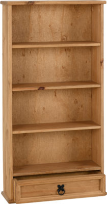Corona 1 drawer dvd rack finished in distressed waxed pine , self assembly.520 x 175 x 1030
