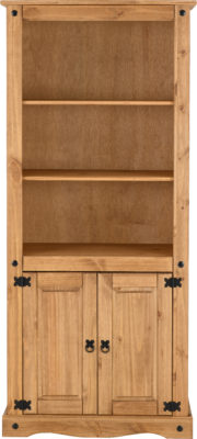 Corona 2 door display unit/bookcase finished in distressed waxed pine, self assembly.810 x 445 x 1820