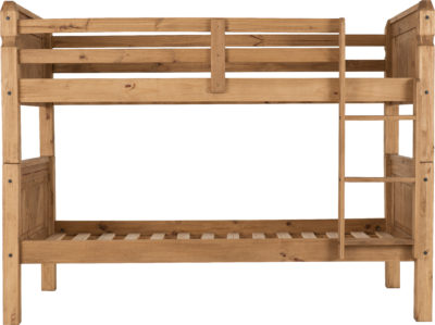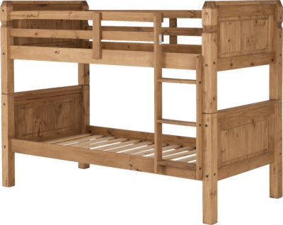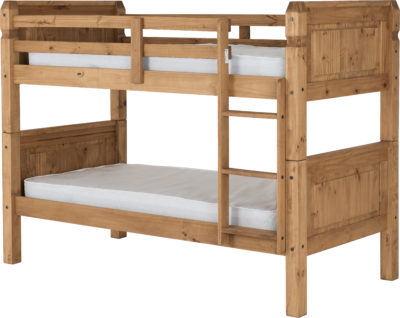 Corona 3ft bunk bed frame finished in distressed waxed pine, can be split to single beds. mattress’s extra self assembly. 2050 x 1050 x 1540