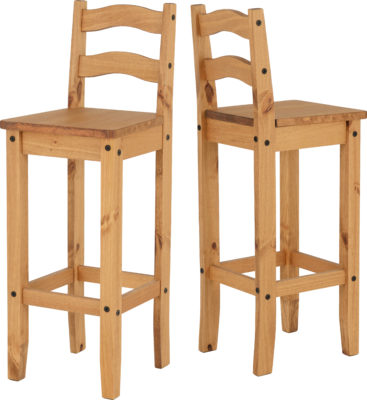 Corona pair of bar chairs finished in waxed pine . self assembly