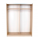 Dallas sliding wardrobe with high gloss mocha sliding doors with shelves and rails. Carcas is oak finish.