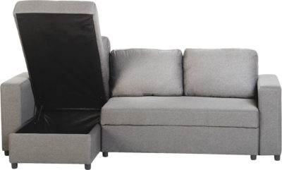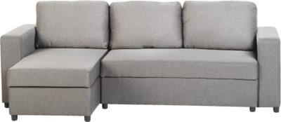 Dora corner sofa bed in light grey fabric, can be left hand or right hand with front pull sofa bed, some assembly required.