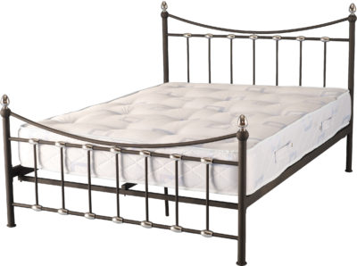 Dunbar 4,6 metal bedframe finished in black and chrome, wooden sprung slatted base , self assembly. 1430 x 2010 x 1130