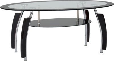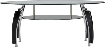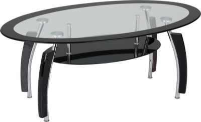 Elena coffee table clear and black border on glass with lower shelf, self assembly.1100 x 595 x 450