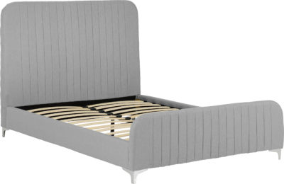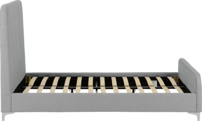 Hampton 4.6 bed frame finished in light grey fabric, with sprung slats and extra support legs ,mattress extra, self assembly. 1480 x 2110 x 1250