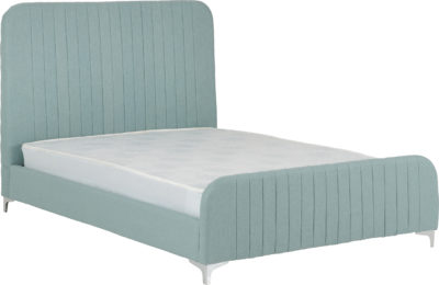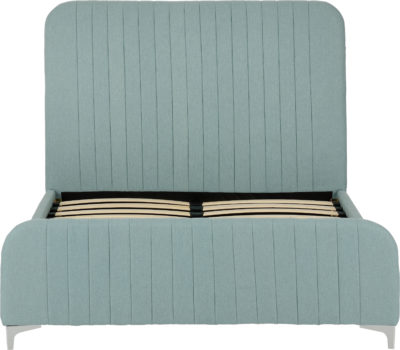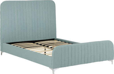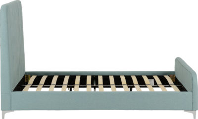 Hampton 4.6 bed frame finished in teal fabric, with sprung slats and extra support legs , self assembly. 1480 x 2110 x 1250
