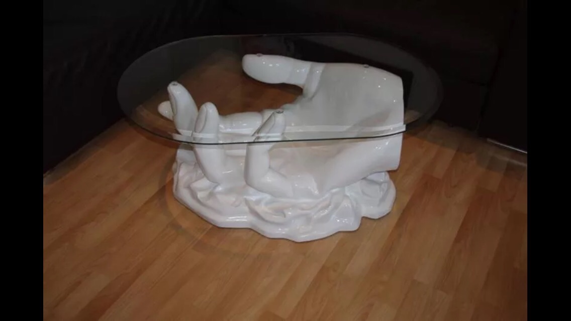 Hand coffee table with great detail finished in white with clear oval glass top. 100cm x 65cm
