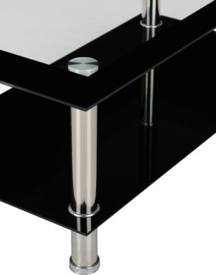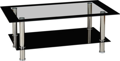 Harlequin coffee table clear glass with black border and black bottom glass. self assembly.1100 x 600 x 430