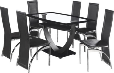 Henley dining set with 6 chairs dining table has clear glass with black border, self assembly 1400 x 900 x 755