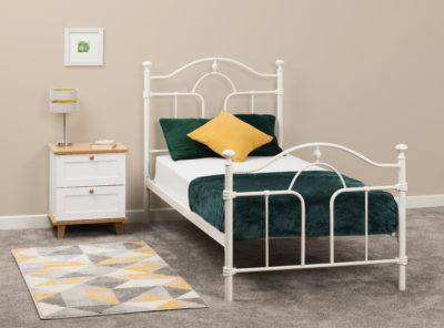 Keswick 3ft metal beframe finished in cream with sprung slats, mattress extra, 990 x 2015 x 1140
