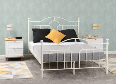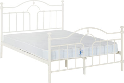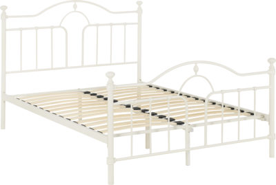 Keswick 4.6 metal beframe finished in cream with sprung slats, mattress extra, 1470 x 2015 x 1140