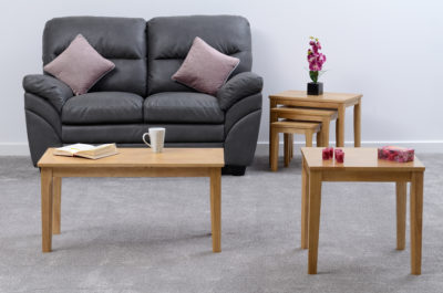 Logan coffee table finished in oak varnish. self assembly. 900 x 450 x 450