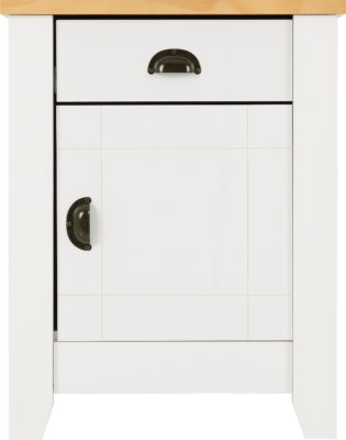 Ludlow 1 drawer 1 door bedside cabinet finished in white and oak laquer, self assembly. 465 x 410 x 595