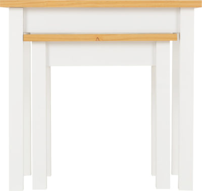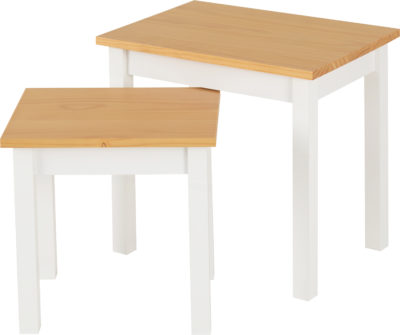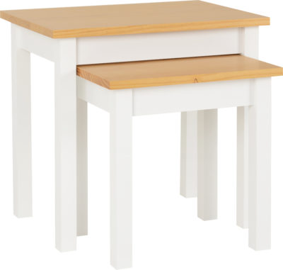 Ludlow nest of 2 tables finished in white and oak lacquer top, self assembly.