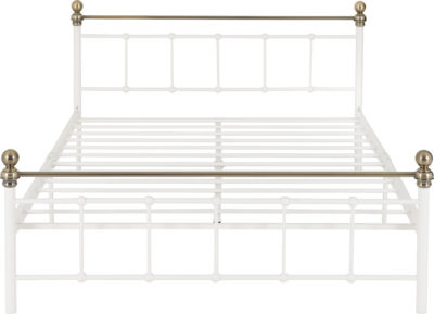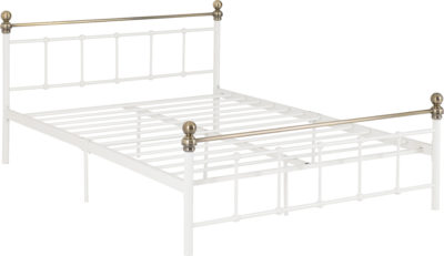 Marlborough 4.6 bedframe with tubular base finished in white and antique brass, self assembly. mattress extra. 1425 x 2010 x 870