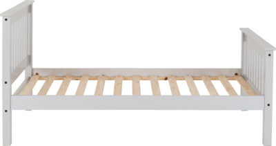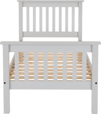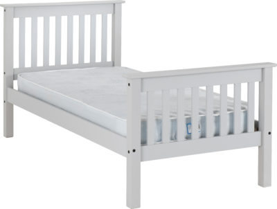 Monaco 3ft wooden bedframe with high footend finished in grey, wooden slats, mattress extra self assembly. 1025 x 2040 x 1025