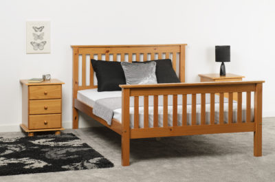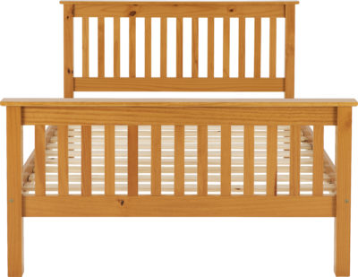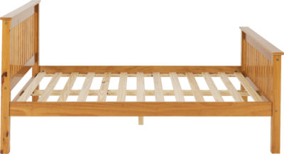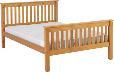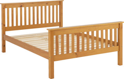 Monaco 4.6 wooden bedframe with high footend finished in Antique pine, wooden slats, mattress extra self assembly.