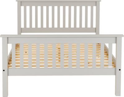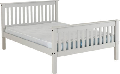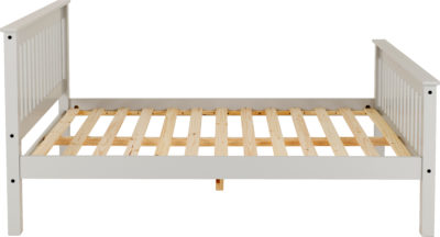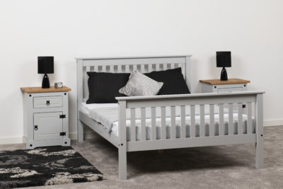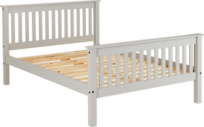 Monaco 4.6 wooden bedframe with high footend finished in grey, wooden slats, mattress extra self assembly.