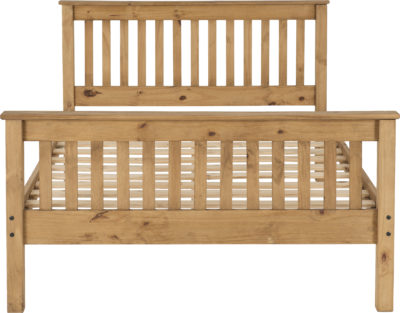 Monaco 5ft bedframe with high foot end finished in Distressed waxed pine with wooden slats, self assembly, mattress extra.1630 x 2130 x 1025