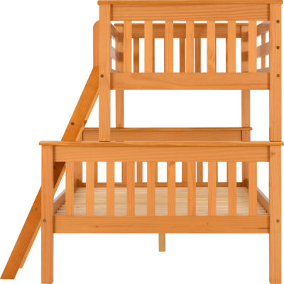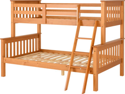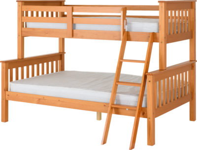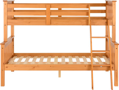 Neptune triple sleeper bunk bedframe finished in oak effect with wooden slats, can be split to 4ft and 3ft beds, self assembly, mattress’s extra.