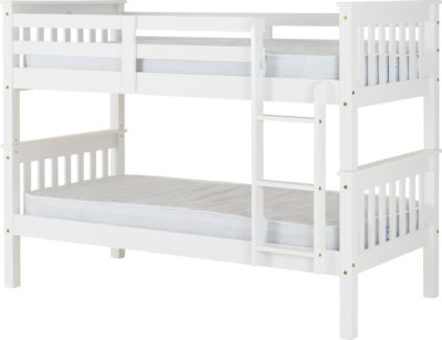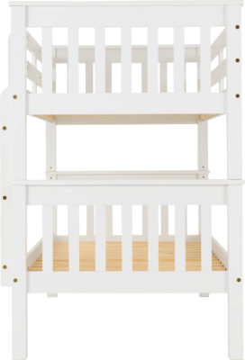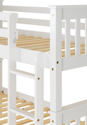 Neptune 3ft bunk bedframe finished in white with wooden slats, can be split to single beds, self assembly, mattress’s extra.
