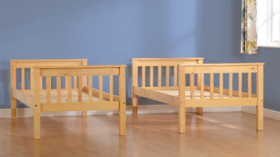 Neptune 3ft bunk bedframe finished in white with wooden slats, can be split to single beds, self assembly, mattress’s extra.