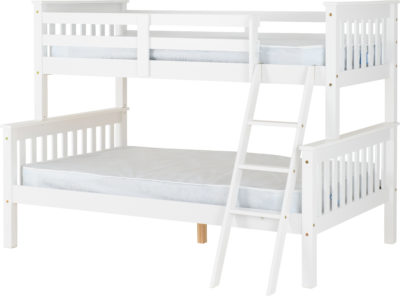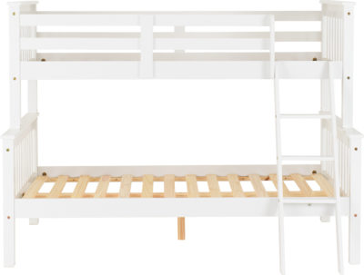 Neptune triple sleeper bunk bedframe finished in white with wooden slats, can be split to 4ft and 3ft beds, self assembly, mattress’s extra.