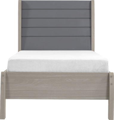 Nevada 3ft wooden bedframe finished in grey gloss and light oak effect veneer with wooden slats, self assembly, mattress extra