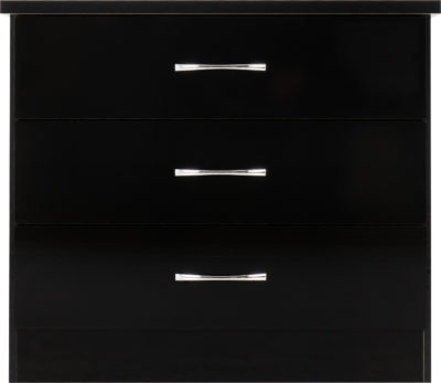 Nevada 3 drawer chest finished in black gloss with metal runners.