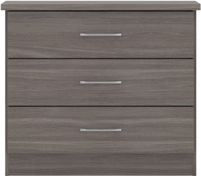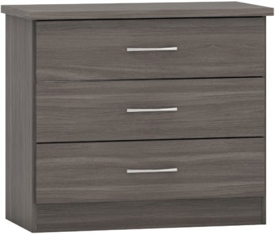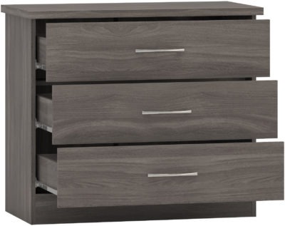 Nevada 3 drawer chest finished in black wood grain effect with metal runners.