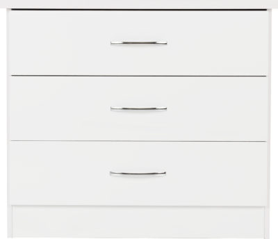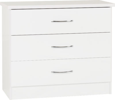 Nevada 3 drawer chest finished in white gloss with metal runners.