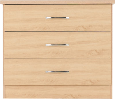 Nevada 3 drawer chest finished in sonoma oak effect with metal runners.