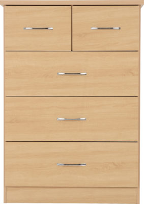 Nevada 3+2 drawer chest finished in sonoma oak with metal runners .