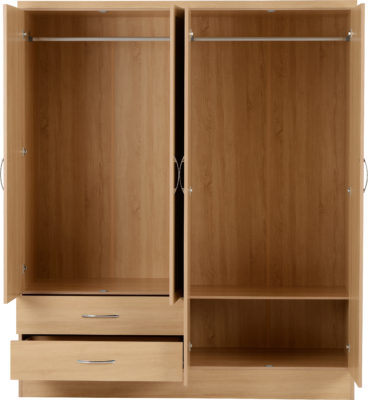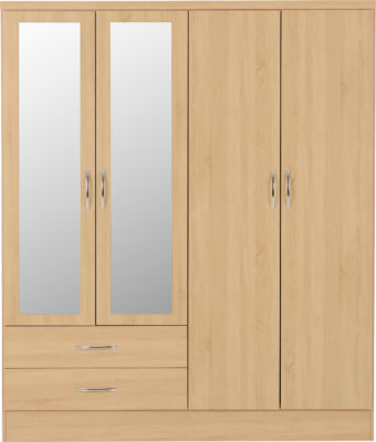 Nevada 4 door 2 drawer mirrored wardrobe finished in sonoma oak effect.