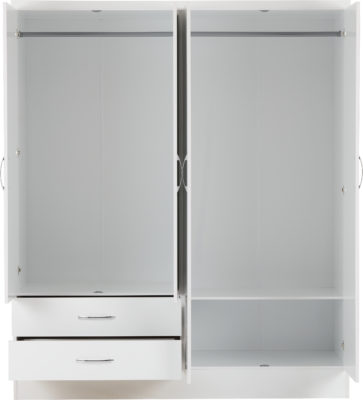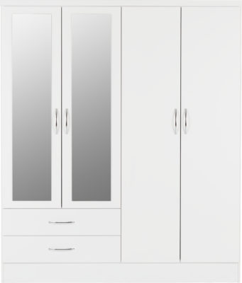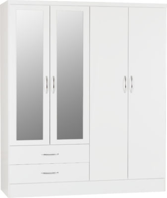 Nevada 4 door 2 drawer mirrored wardrobe finished in white gloss.