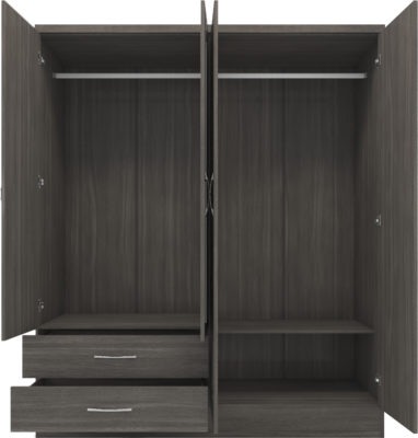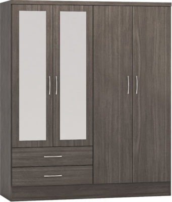 Nevada 4 door 2 drawer mirrored wardrobe finished in black wood grain effect.