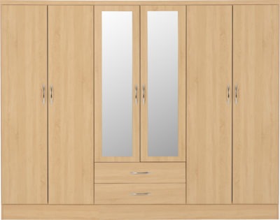 Nevada 6 door 2 drawer mirrored wardrobe finished in somoma oak effect.