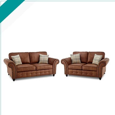 The Oakland Faux Leather 3 + 2 Seater Sofa in Tan fabric gives an elegant and luxurious feel to any living space. The suiteĀ features a stylish brass stud and button detailing along with sturdy wooden feet.Made in the UK, the Oakland range has a foam filled seat cushions with fibre filled back cushions to ensure your sofa keeps it shape as well as being comfortable.