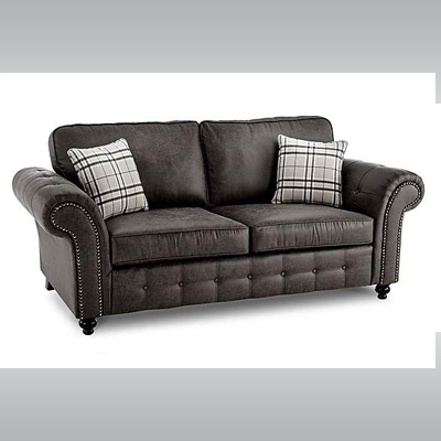 Oakland 3str and 2str set finished in charcoal fabric is a must if you like to tuck your legs under whilst you are sitting, with its deep seat and firm arms gives you added luxurious seat . The back has formal cushions with the seat having foam cushions. Detailing on the arms with buttons and studs not forgetting the turned feet , a truly magnificent suite.